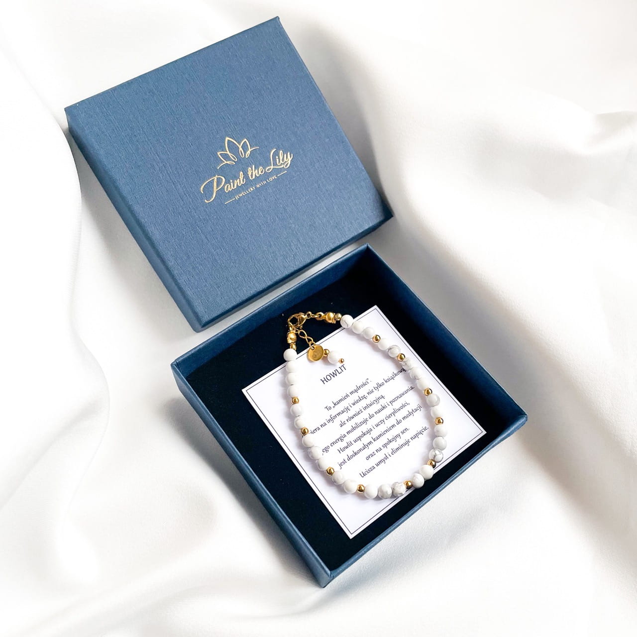 Biżuterię Paint the lily otrzymasz zapakowaną w granatowe, ekologiczne pudełeczko ze złotym logo marki oraz znaczeniem danego kamienia. Możesz również wybrać jedną z darmowych dedykacji lub utworzyć własną, personalizowaną karteczkę z życzeniami.