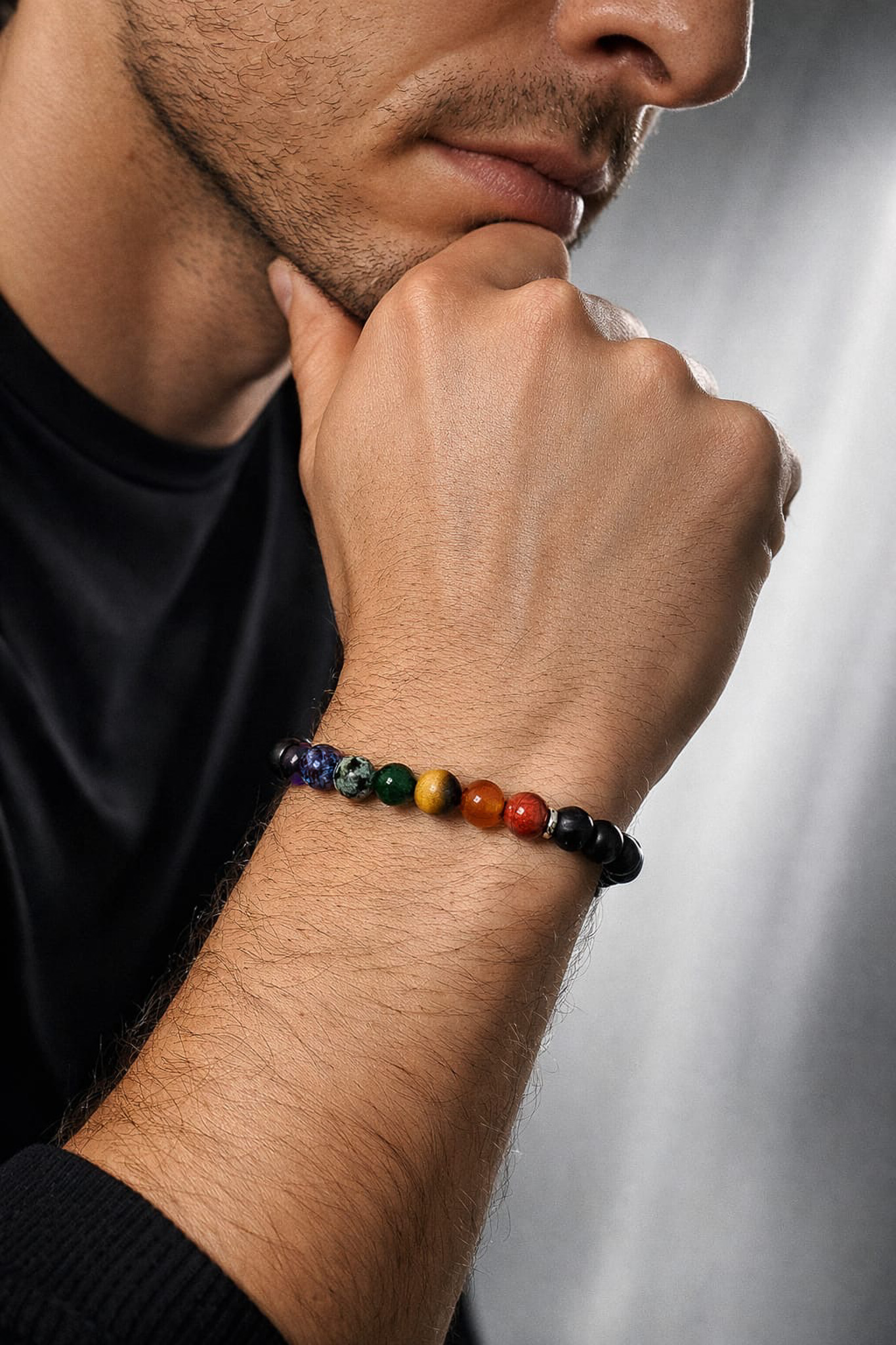 Męska Bransoletka z kamieni naturalnych Czakry THOR / Talizman Harmonii