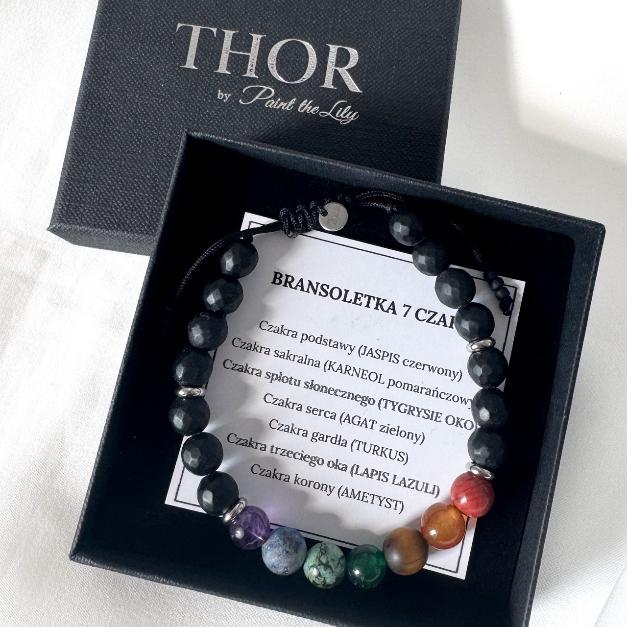 Bransoletka oraz pudełeczko, w które ją pakujemy sygnowane jest naszą męską kolekcją THOR.